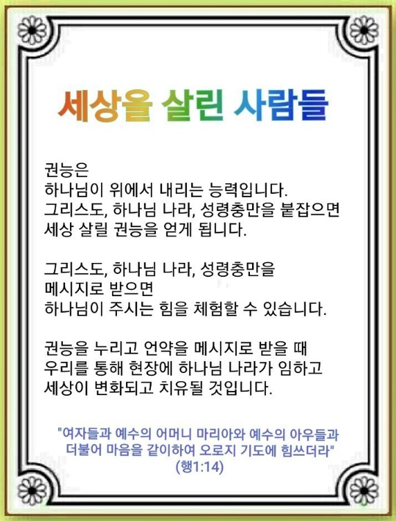 [전도자의 기도] 하나님! 하나님이 위에서 주시는 능력으로 충만하게 하시고, 하나님의 말씀이 나에게 메시지가 되어 능력의 사람이 되게 하옵소서.