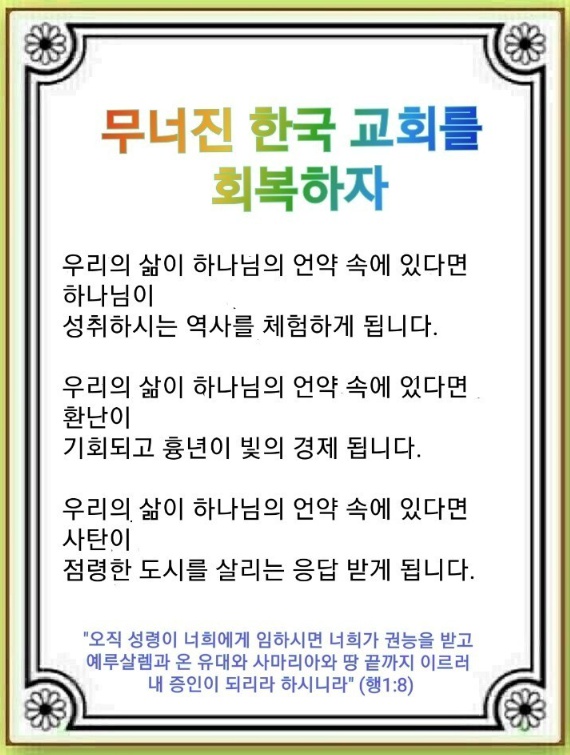 무너진 한국 교회를 회복하자(사도행전 1:8~14)