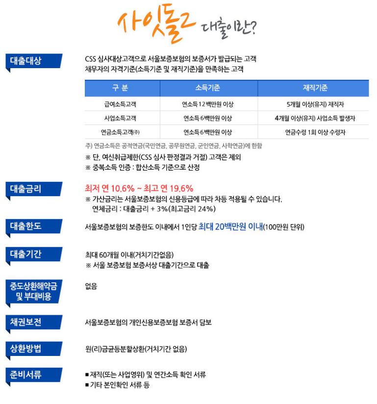 ㆍ대출한도 : 최대 5천만원 (신용등급별 차등, 생계자금+대환자금)