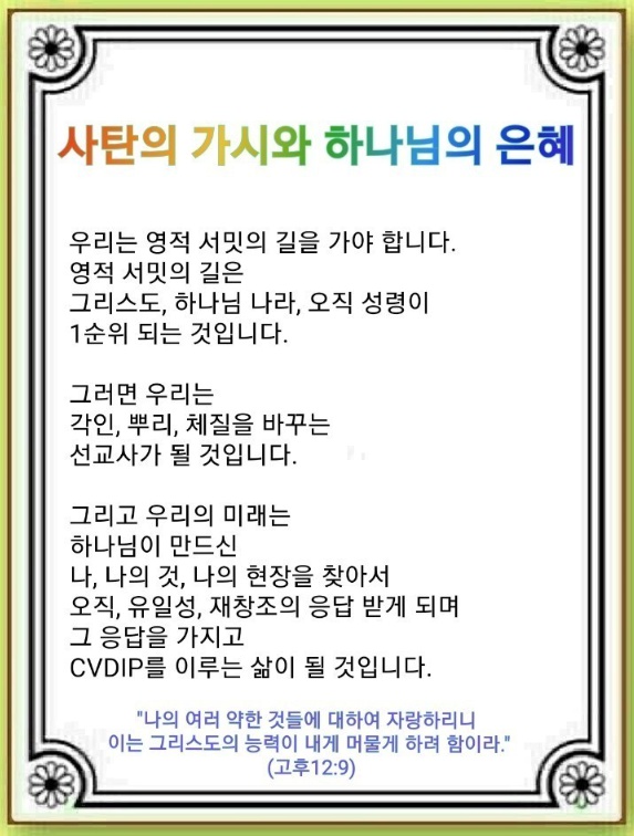 우리는 이미 영적 서밋입니다. 이 정체성을 기억하며 오직 하나님이 들려주시는 소리를 듣고, 하나님이 보여주시는 것을 보며, 하나님이 인도하시는 곳으로 가야 합니다. 오직 그리스도, 오직 하나님 나라, 오직 성령의 언약이 우리의 1순위가 되어야 합니다. 이 언약을 누림으로 전도자의 삶 62가지를 응답으로 체험할 때, 하나님의 것이 아닌 다른 것을 듣고 보며 살아가는 60억 인구를 살릴 수 있습니다.