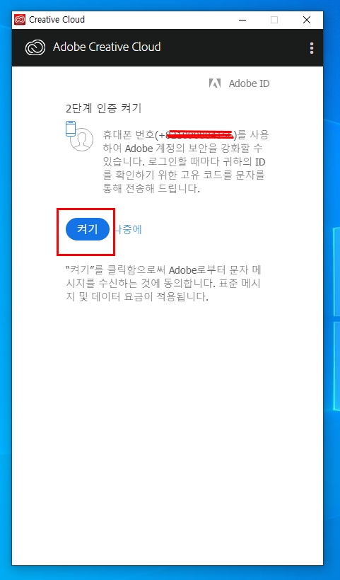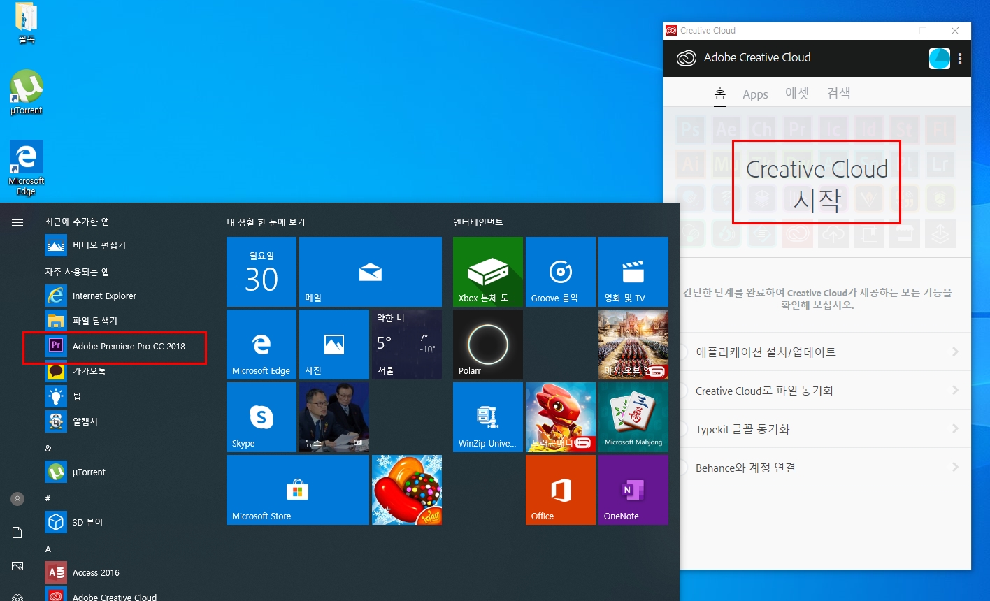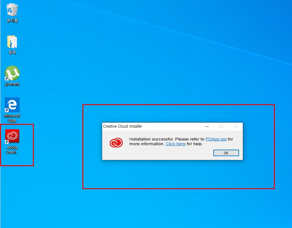 OK를 클릭하고 바탕화면 adobe Creative를 실행합니다.
