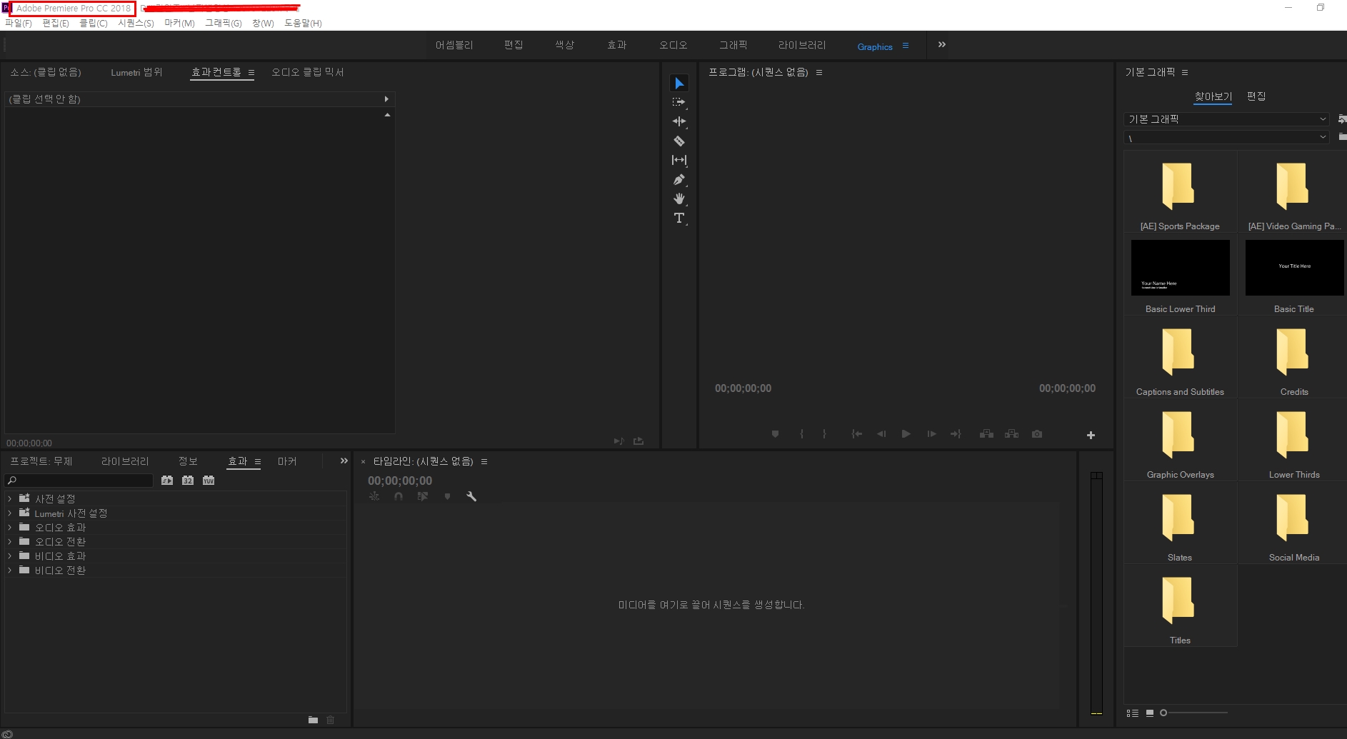 프리미어 프로 8.0이 정상적으로 실행된 모습입니다.