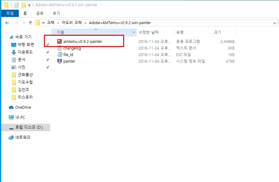 그런다음에 Adobe+AMTemu+v0.9.2.win-painter 압축을 풀어줍니다.