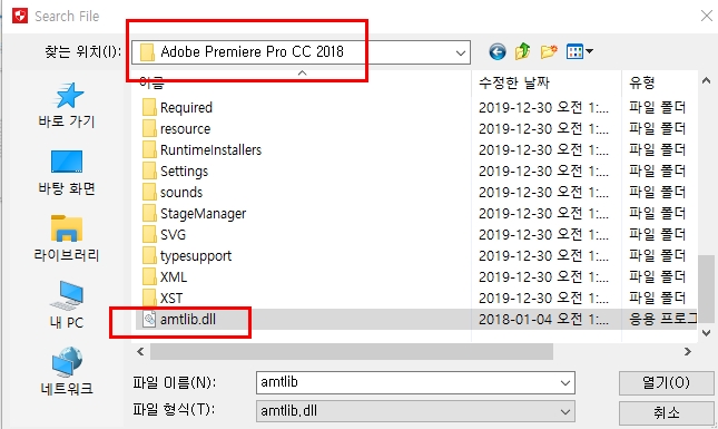 그럼 amtlib.dll 파일 위치를 물어봅니다. 경로를 지정하고 열기를 합니다.