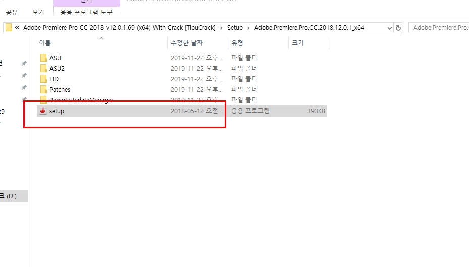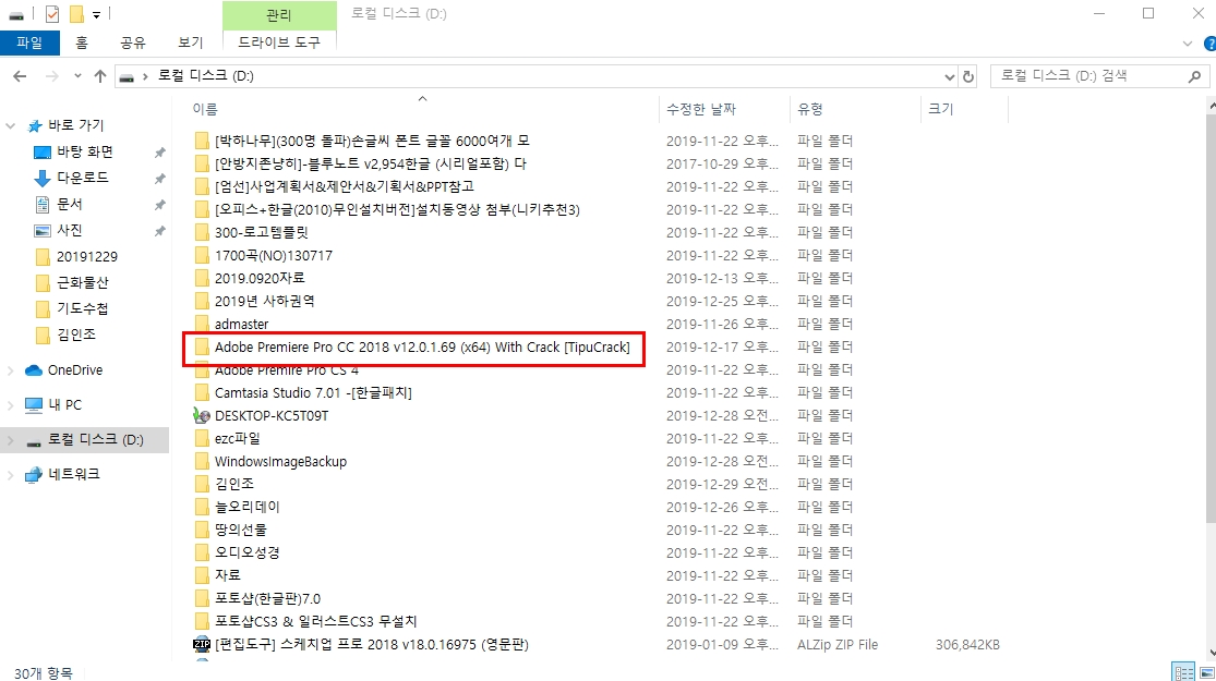 다음으로 프리미어 프로 8.0과 같이 받은 파일중에 크랙파일을 설치해야 합니다.