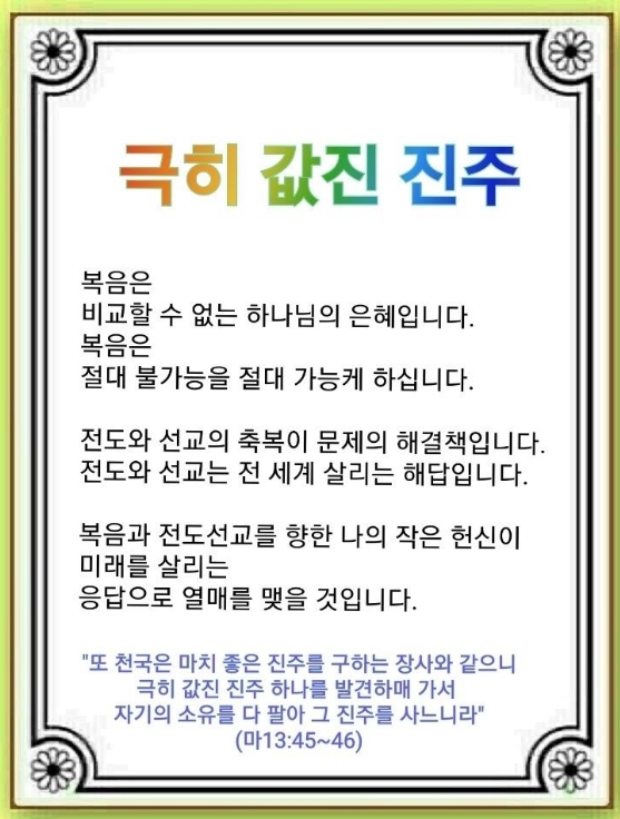 [언약 기도] 하나님! 값진 복음의 가치를 알게 하심에 감사합니다. 이 복음으로 치유의 증인으로 서게 하옵소서.