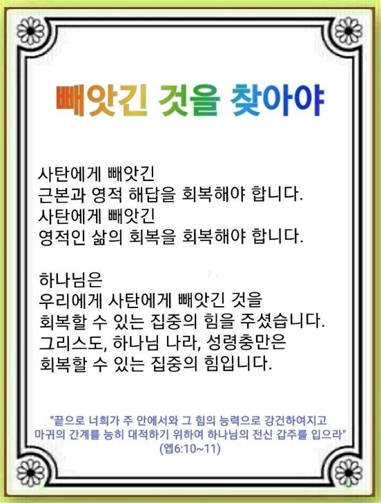 빼앗긴 것을 찾아야(에베소서 6:10~20)