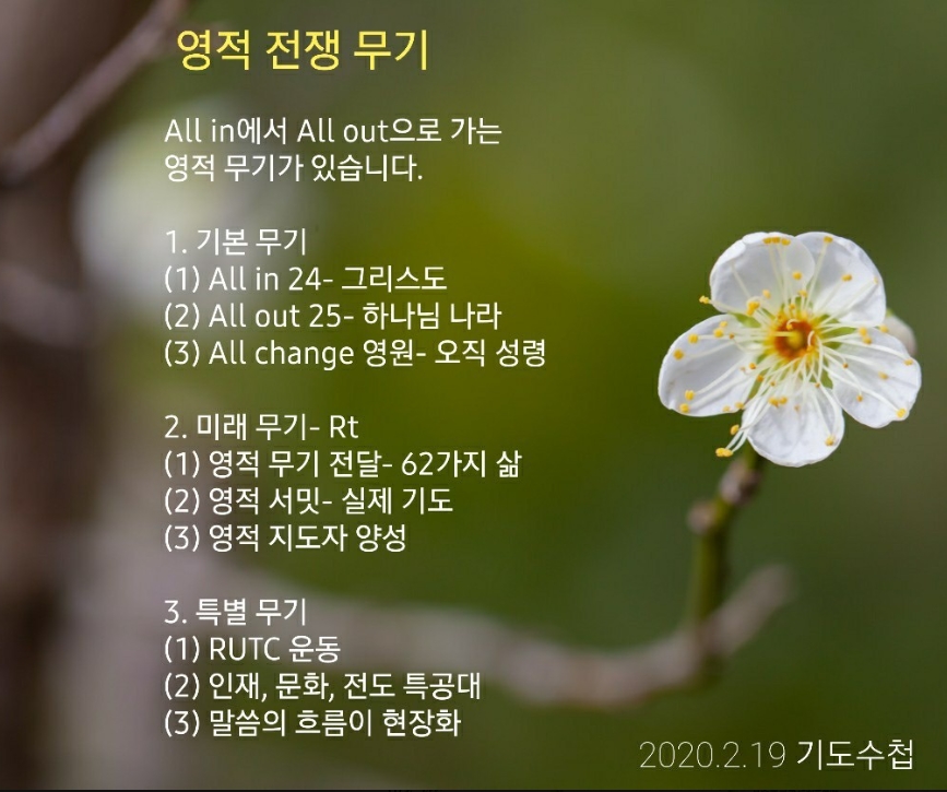 | 선교는 영적 전쟁이다(이사야 60:1~3, 사도행전 1:14)-기도수첩 (0) | 2020.02.18 |