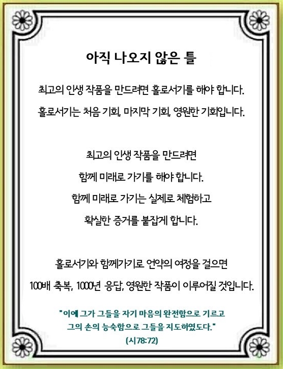 홀로 하나님을 바라보는 오직의 시간입니다.