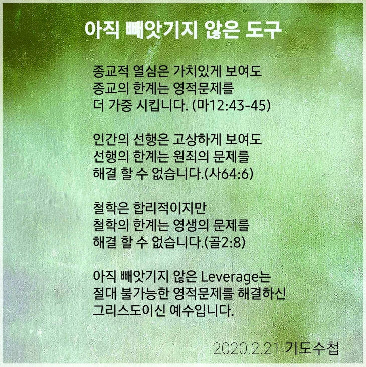 | 영적 전쟁 무기를 갖추라(이사야 60:1~3)-기도수첩 (0) | 2020.02.19 |