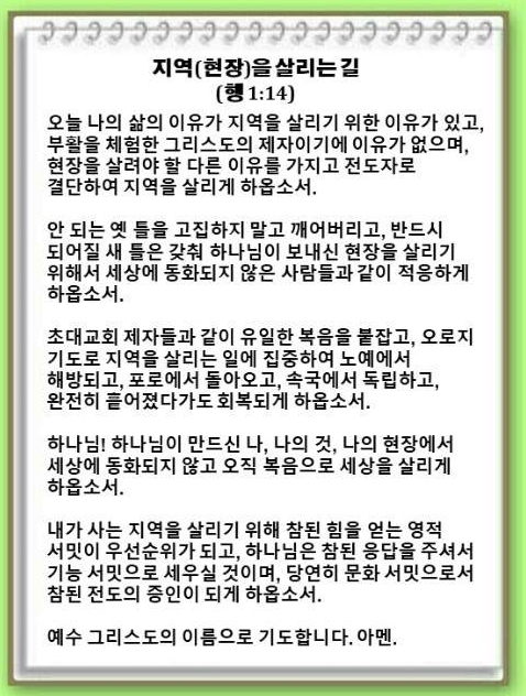 지역(현장)을 살리는 길(사도행전 1:14)