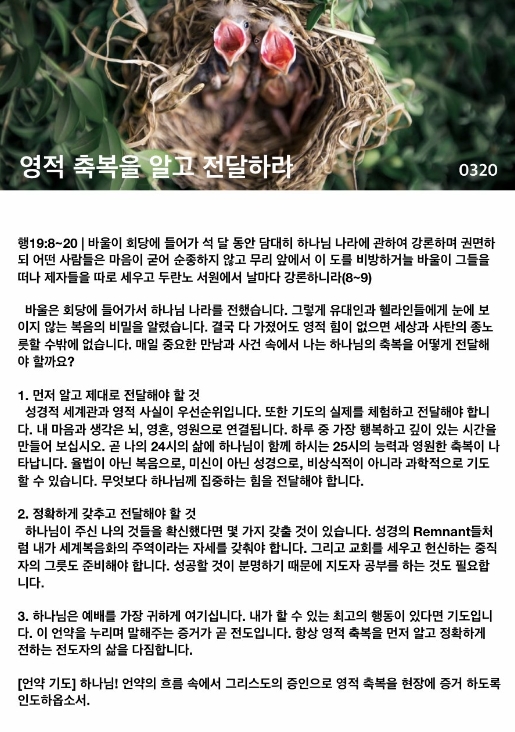 영적 축복을 알고 전달하라(사도행전 19:8~20)