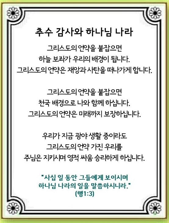 [언약 기도] 하나님이 약속하신 하나님 나라의 배경을 누리는 오늘이 되게 하옵소서. 예수 그리스도 이름으로 기도합니다. 아멘