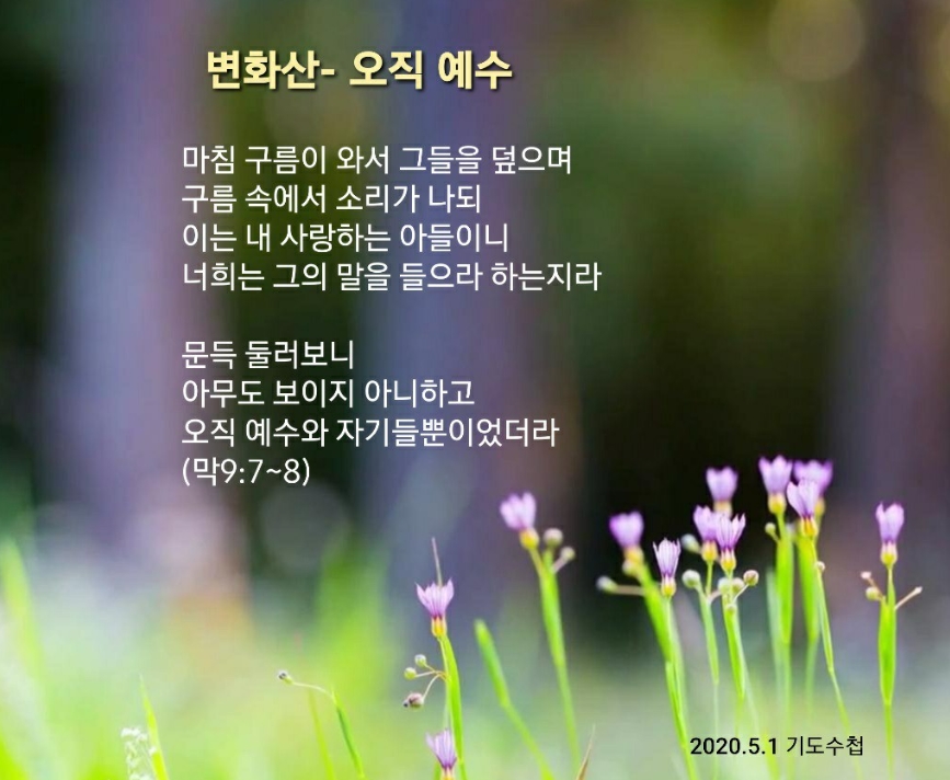 | 믿는 자에게는 능히 하지 못할 일이 없느니라(마가복음 9:17~23)기도수첩 (0) | 2020.05.02 |