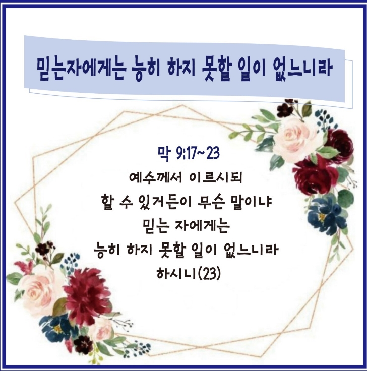 믿는 자에게는 능히 하지 못할 일이 없느니라(마가복음 9:17~23)
