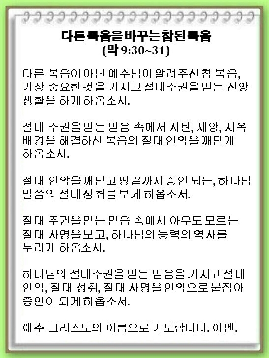 다른 복음을 바꾸는 참된 복음(마가복음 9:30~31)-기도수첩