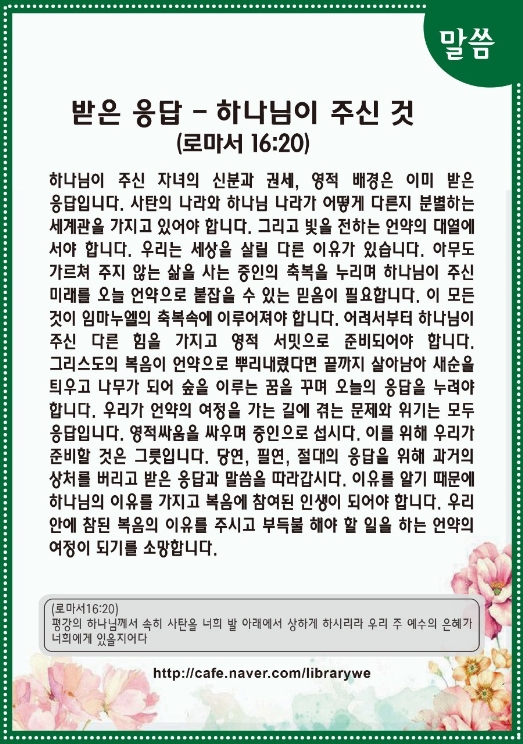받은 응답 - 하나님이 주신 것(로마서 16:20)