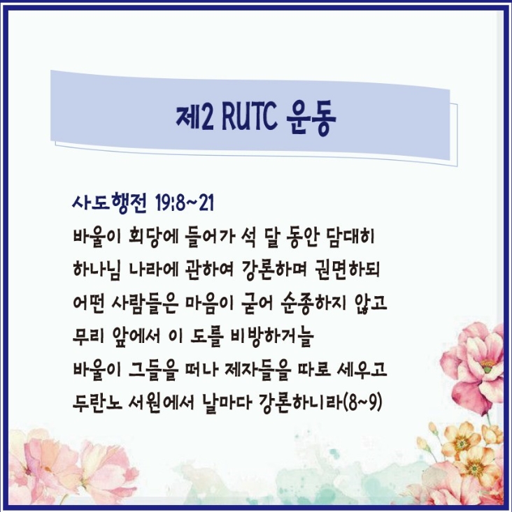 복음을 가진 소수가 복음 운동, 말씀 운동, 전도 운동을 했습니다. 이것이 제1 RUTC 운동이 되었습니다(광야 운동, 미스바 운동, 도단성 운동, 파수꾼 운동, 감람산 운동, 마가다락방 운동). 핍박과 누명을 쓰고, 법적으로도 복음 전파가 막힌 시기에, 아무도 막지 못하는 제2 RUTC 운동이 일어났습니다. 이때 중직자 산업인이 붙잡은 언약은 무엇일까요?