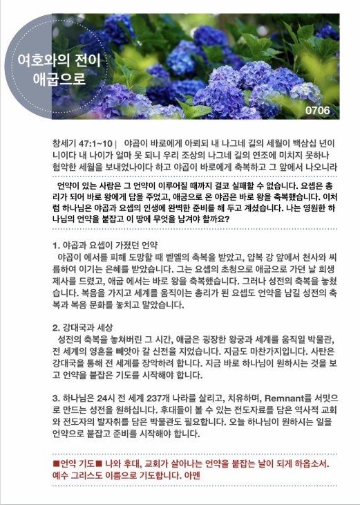 | 언약의 꿈은 반드시 성취됩니다(창세기 45:1~15)-기도수첩 (0) | 2020.07.04 |