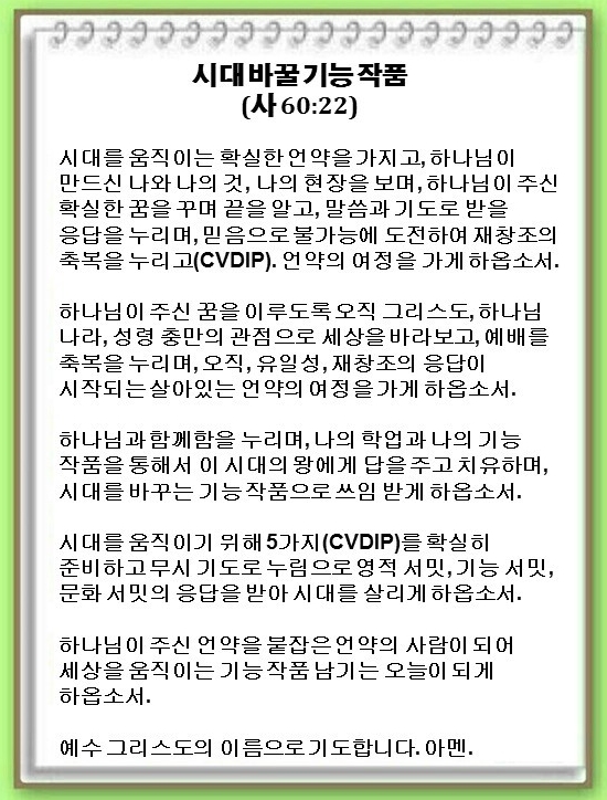 시대 바꿀 기능 작품(이사야 60:22)