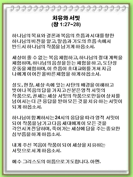 [언약 기도] 내게 주신 복음이 작품이 되어 세상을 치유하는 서밋으로 서게 하옵소서. 예수 그리스도 이름으로 기도합니다. 아멘