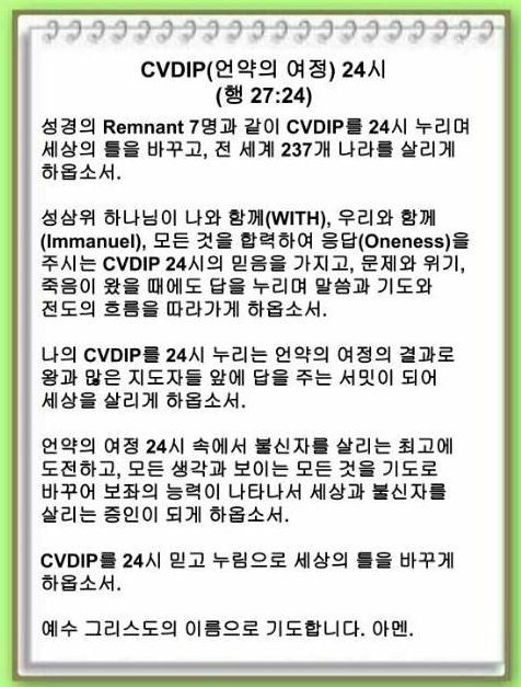 [언약 기도] CVDIP를 24시 믿고 누림으로 세상의 틀을 바꾸게 하옵소서. 예수 그리스도 이름으로 기도합니다. 아멘
