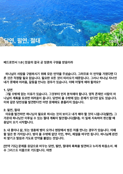 | 오직, 유일성, 재창조(사도행전 4:12)-기도수첩 (0) | 2020.08.10 |