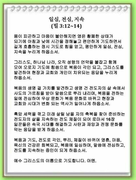 일심, 전심, 지속(빌립보서 3:12~14)