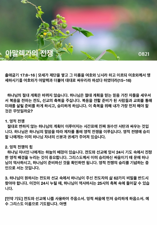 [언약 기도] 전도와 선교에 나를 사용하여 주옵소서. 영적 싸움에 먼저 승리하게 하옵소서. 예수 그리스도 이름으로 기도합니다. 아멘
