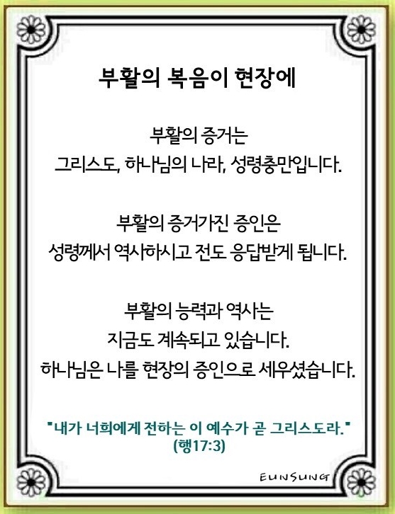 인류 역사상 가장 큰 사건이 있습니다. 예수님이 아무 죄 없이 십자가에서 죽으시고 부활하신 사건입니다. 하나님은 이 사건을 믿는 믿음을 나에게 주셨습니다. 이 믿음은 전 세계 모든 인류를 구원할 복음이 되었습니다. 그 복음의 힘과 능력을 회복하고 누리게 하는 부활의 증거는 무엇일까요?