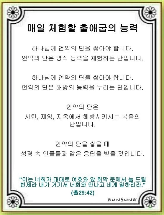 매일 체험할 출애굽의 능력(출애굽기 29:38~46)