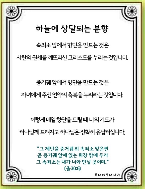 하늘에 상달되는 분향(출애굽기 30:1~10)