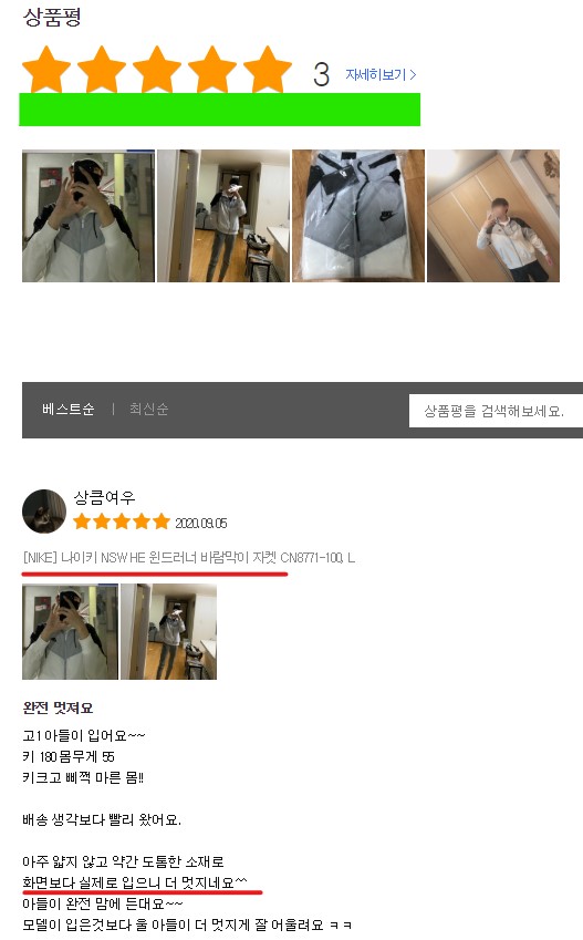 나이키 윈드러너 바람막이 상품평 5점 만점에 5점 참좋아요!!!!