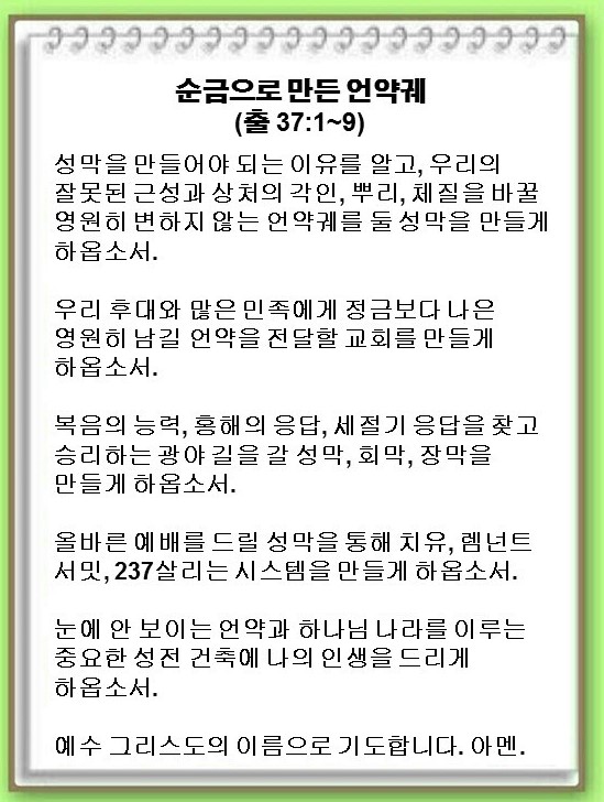 [언약 기도] 눈에 안 보이는 언약과 하나님 나라를 이루는 중요한 성전 건축에 나의 인생을 드리게 하옵소서. 예수 그리스도 이름으로 기도합니다. 아멘