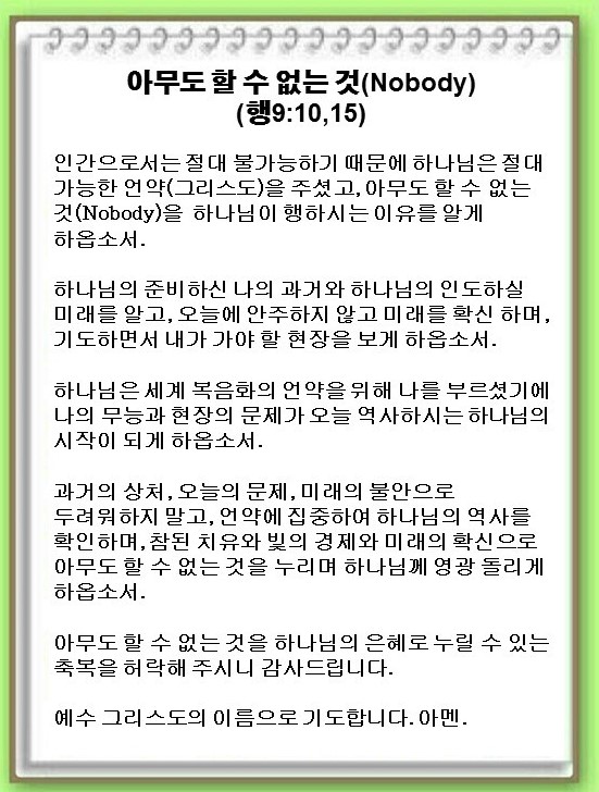 아무도 할 수 없는 것, Nobody(사도행전 9:10, 15)