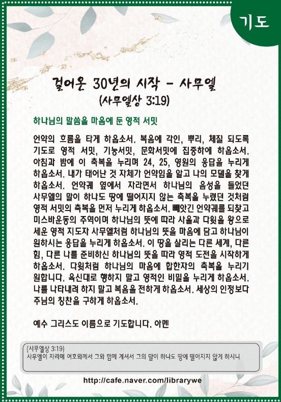 걸어온 30년의 시작 - 사무엘(사무엘상 3:19)