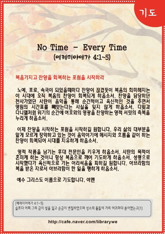 [언약 기도] 사탄에게 빼앗긴 찬양을 회복하여 하나님께 영광 돌리게 하옵소서. 예수 그리스도 이름으로 기도합니다. 아멘