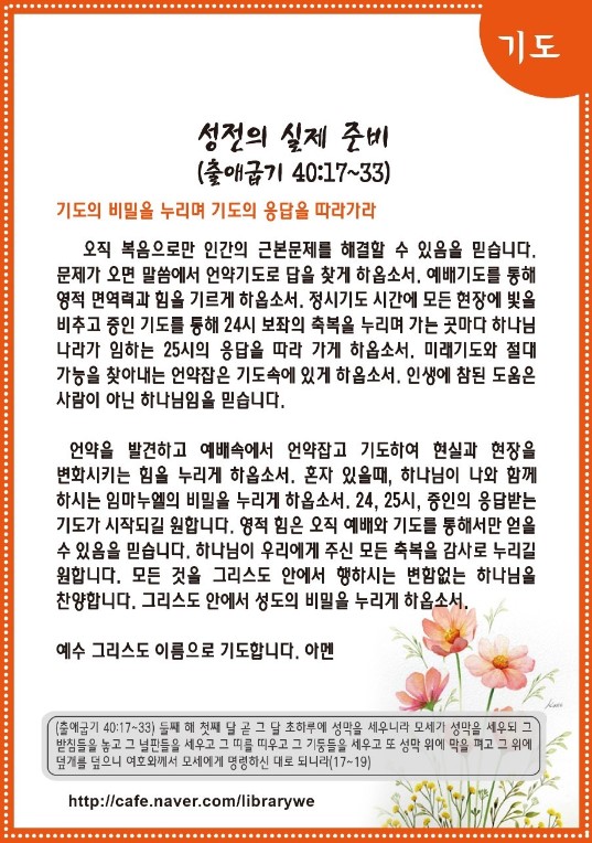 | 여호와의 영광이 머무는 성전(출애굽기 40:34~38)-기도수첩 (0) | 2020.12.03 |