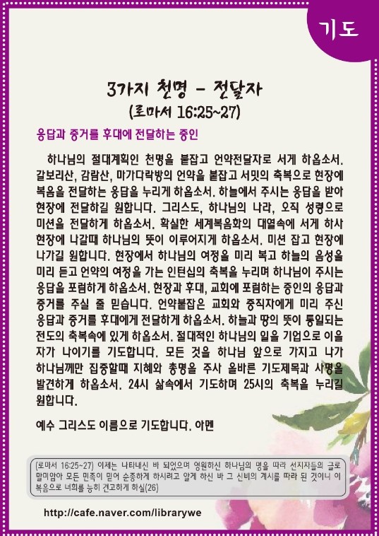 3가지 천명 - 전달자(로마서 16:25~27)-기도수첩
