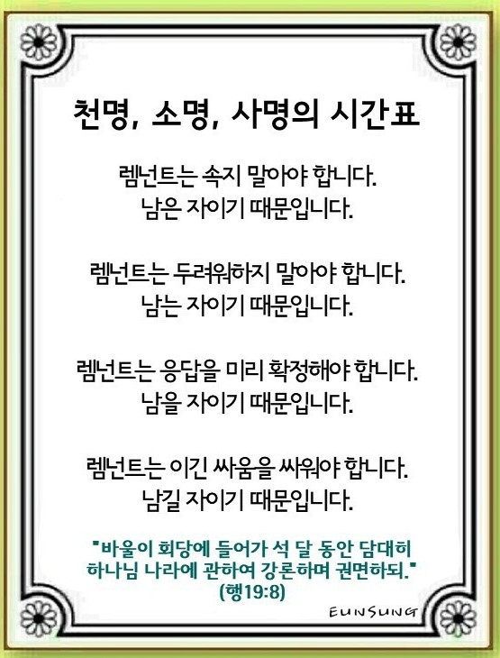 천명, 소명, 사명의 시간표(사도행전 19:8~10)