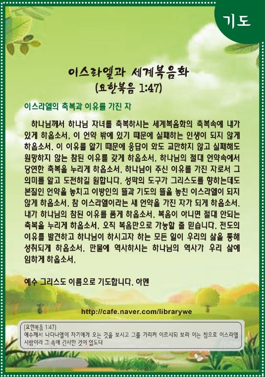 [언약 기도] 당연한 축복, 필연적 축복, 절대적 축복을 가지고 세계복음화의 언약의 여정 속에 있게 하옵소서. 예수 그리스도 이름으로 기도합니다. 아멘