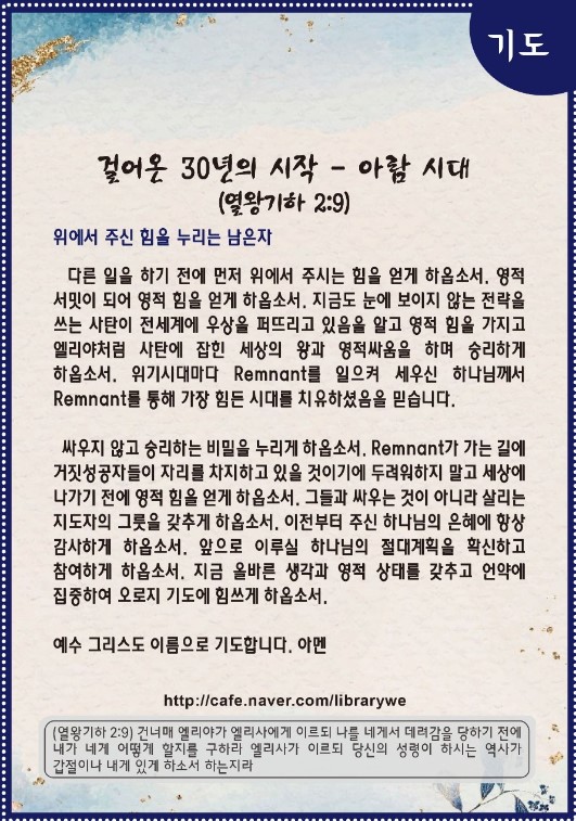 [언약 기도] 지금 이 시간 전 세계에서 영적 서밋으로 준비되고 있는 Remnant들에게 영적 힘을 주옵소서. 예수 그리스도 이름으로 기도합니다. 아멘