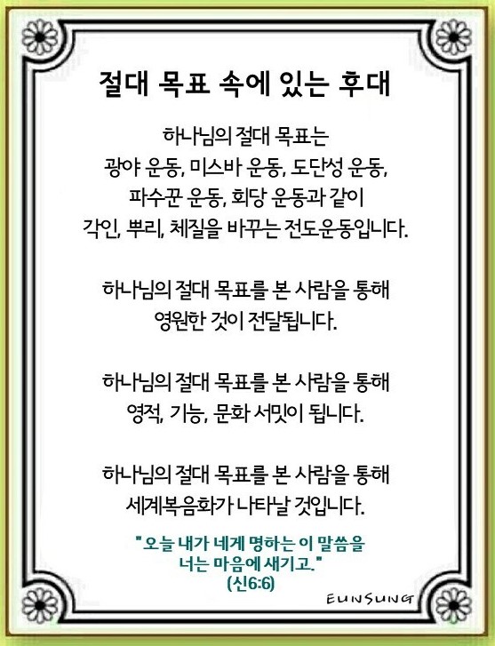 절대 목표 속에 있는 후대(신명기 6:4~9)
