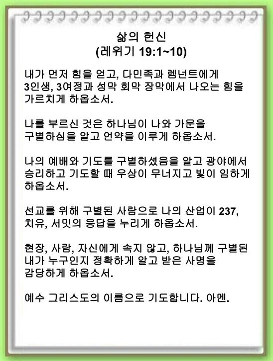 삶의 헌신(레위기 19:1~10)