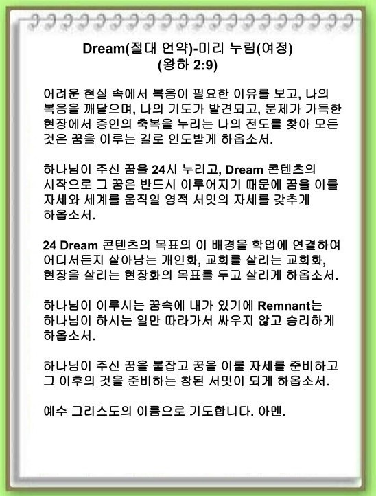 Dream[절대 언약] - 미리 누림[여정] (열왕기하 2:9)-기도수첩