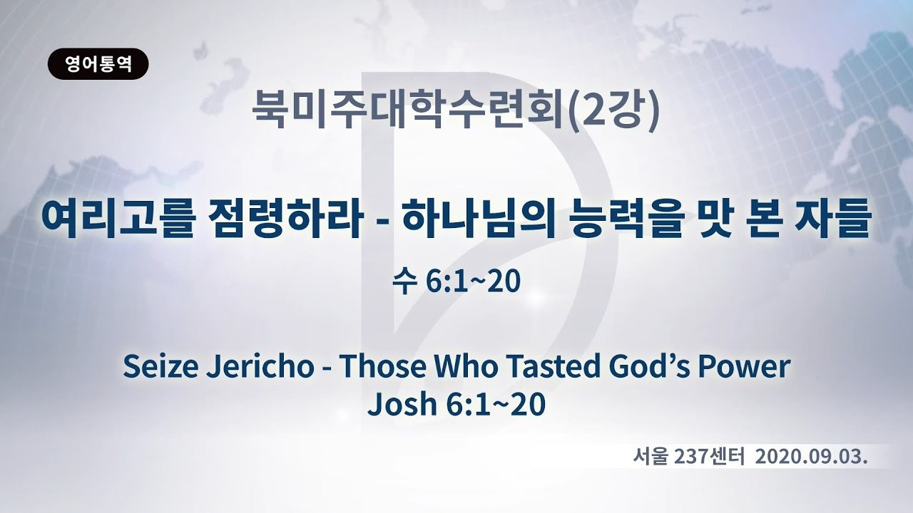 여호수아는 여리고를 무너뜨리기 위해 언약궤를 맨 자를 따라가되 입에서 아무 말도 하지 말고, 마지막 날에 Oneness를 이루어 외치라고 했습니다. 나아가 반드시 무너질 여리고 이후의 미래를 체험했습니다. 여리고가 무너질 것이라는 믿음이 있었던 라합은 그리스도의 족보에 들어갔고, 여호수아 이후 엘리사는 여리고의 응답에 머물지 않고 갑절의 영감을 구했습니다.