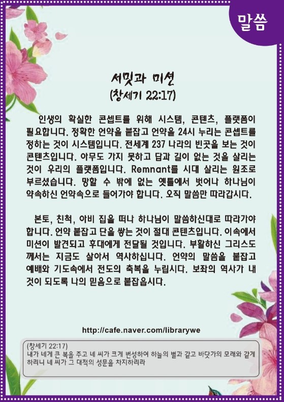 | 서밋과 포럼(창세기 45:5)-기도수첩 (0) | 2021.04.10 |