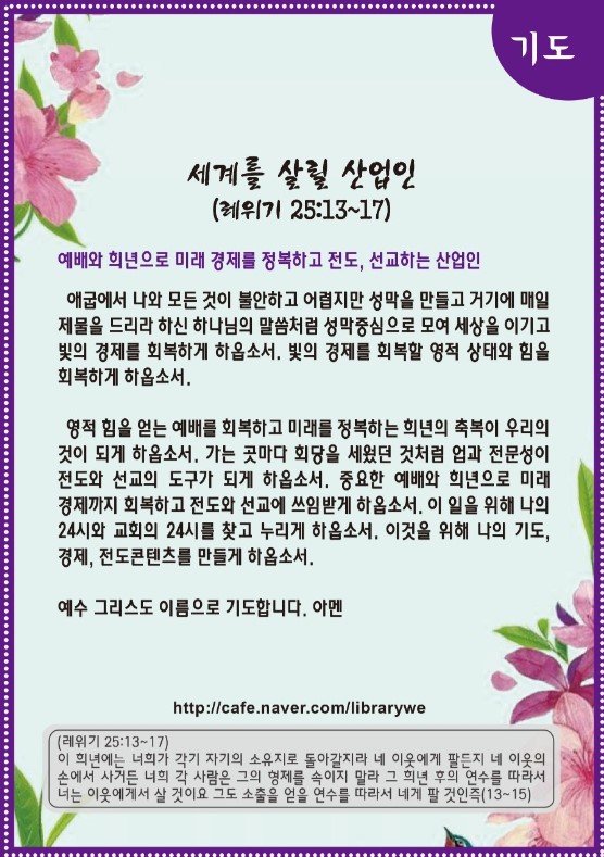 | 산업인의 사명(창세기 12:3)-기도수첩 (0) | 2021.04.14 |