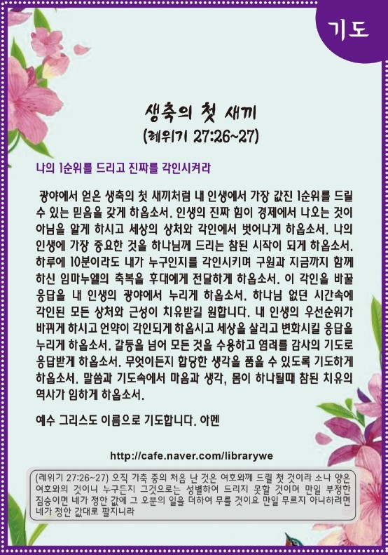 | 십일조, 여호와의 것(레위기 27:28~34)-기도수첩 (0) | 2021.04.17 |