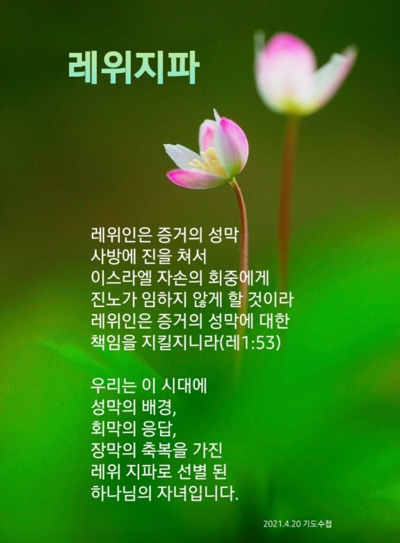 | 싸움에 나갈만한 자(민수기 1:1~19)-기도수첩 (0) | 2021.04.19 |
